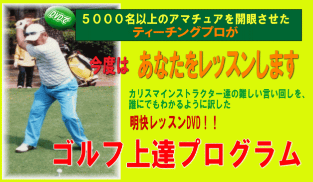 年末にスイング形成編が到着し、イレクターを購入しひたすら練習した結果、大きくスイングが変わりゴルフの内容も散々なものとなりました。今となっては原因はわかりますが当時の私にとっては全く原因がわからず、練習場仲間からは「その練習があってないじゃないの?」言われてました。さすがに1月、2月、3月は散々でしたし、シングルハンデの変なプライドもあり、何とかしなきゃと思うばかりで全くうまくいきませんでした。そんな中、3月初めに広島県の練習場協会主催の予選大会に出場したんですが・・・ 85をたたき予選落ちと思いきやなんとかぎりぎりで通過。そのときたまたま一緒にラウンドした知り合いのスクラッチプレーヤーに「ずいぶん手打ちだったね、状態が強いね」えっ 手打ち!? そうなんです。イレクターで練習する際、初めは下をたたくので、無意識のうちに手打ちでちゃんと当たるようにしていたんだと思います。2回ぐらいDVDをみて後は全く見ずに練習をした代償はあまりにも大きかったですよ・・・・(エラーになりやすい事をちゃんと教えてくださってるのに)